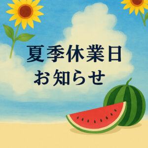 誠に勝手ながら、下記の期間を夏季休業日とさせていただきます。