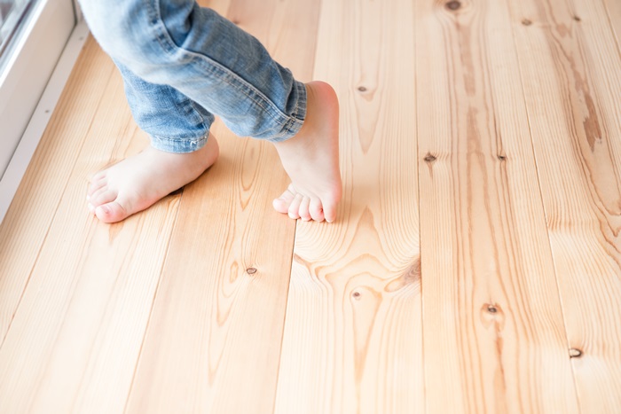 床材には無垢の木が使われています。人工的な素材はキズがついたら凹むけど、自然素材は気持ちが凹みません。自然素材のキズは思い出の証です。