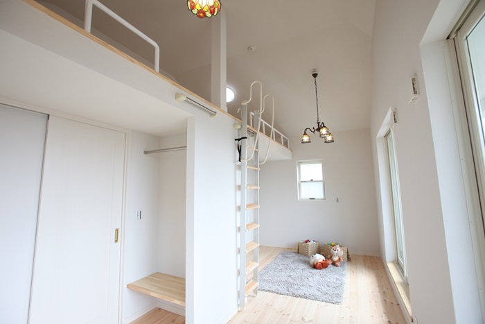 家全体を白の塗り壁を基本としました。床の木肌色と塗壁がツートンカラーとなりシンプルでモダンな感じに仕上がっています。キッチンのカウンターも白系の天然大理石を使いおしゃれ感をアップさせています。